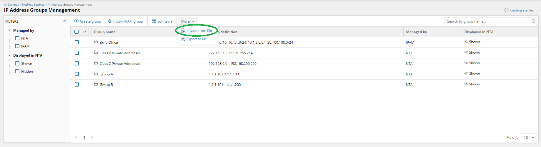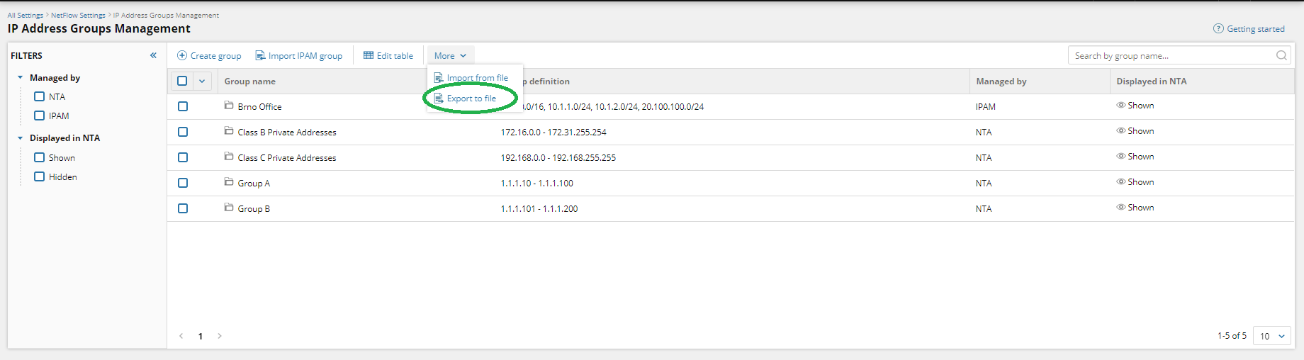 All IP address groups features from previous versions of NTA are still available on the new management page, except for the explicit Printable version.