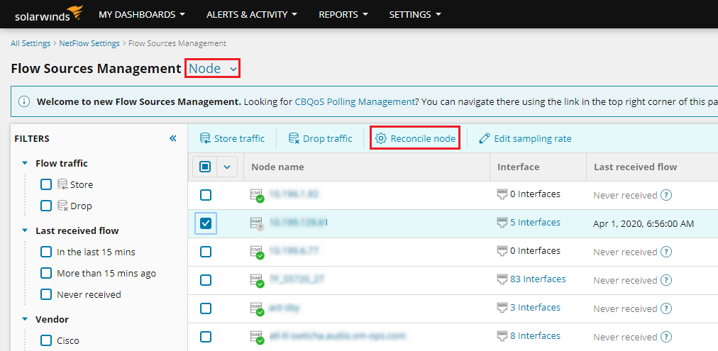 Flow collection is often configured inconsistently across the interfaces of a node. This results in double counted traffic. With NTA, you can reconcile the traffic volumes across multiple interfaces to accurately represent the traffic flowing through a node.