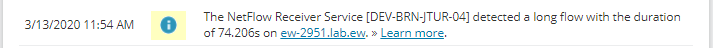 Invalid flow errors recorded in the NetFlow Traffic Analyzer may result when a flow duration exceeds the cache timeout values. This condition displays the following event in the Last XX Traffic Analyzer Events widget: