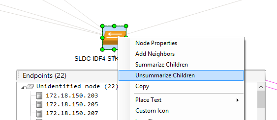 Un-summarizing the children of a node shows the endpoints as they would appear after clicking the Neighbors option on the node. See Show and hide neighbors for details on using that feature.