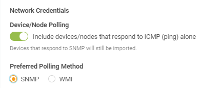 - Select the preferred polling method. The selected method will be used to scan your network first (using the credentials provided below), followed by the second method (using available credentials).
