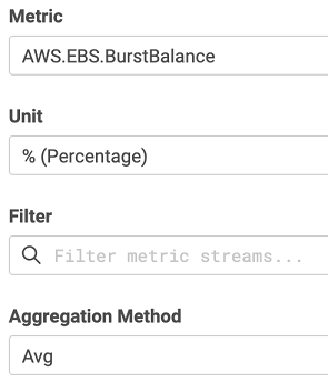 - Time Series — Time Series widgets display values collected for a selected metric in time on a chart.