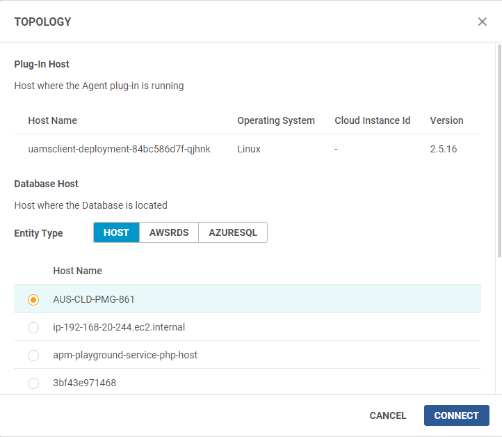 Click the entity type of your Database Host (Host, AWS RDS, or Azure SQL).