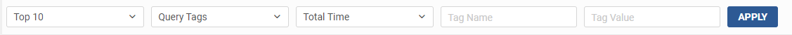 Use the Profiler to rank your recorded queries by query tag. Click Query Tags from the drop-down menu and click Apply to display your selection by query tags. You can get even more granular results by entering a Tag Name, or Tag Value, to search for specific results.