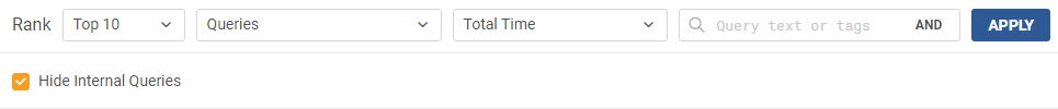 Click the Hide Internal Queries checkbox to hide queries executed by SolarWinds Observability SaaS for database monitoring.