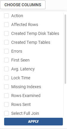 | Created Temp Disk Tables | Displays the number of created temp disk tables during query execution for each of the top selected queries. |