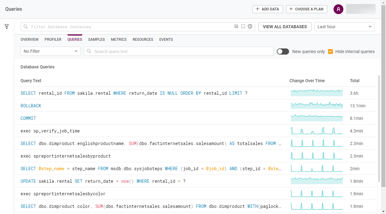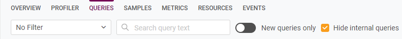 Click the Hide Internal Queries checkbox to hide internal queries executed by SolarWinds Observability SaaS. This option is active by default.