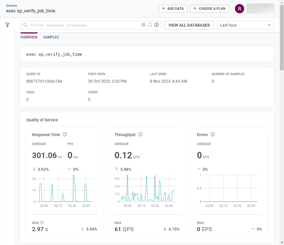 Last Seen: Displays the date and time the query was last observed by SolarWinds Observability SaaS.