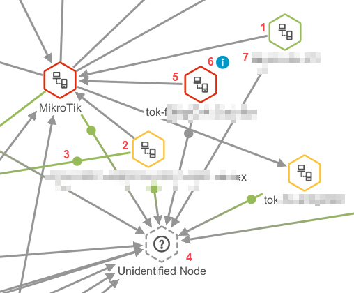 | 4 | Network device discovered but not monitored with SolarWinds Observability SaaS. The device is communicating with a monitored node. You might see its IP address or "Unidentified Node". |
