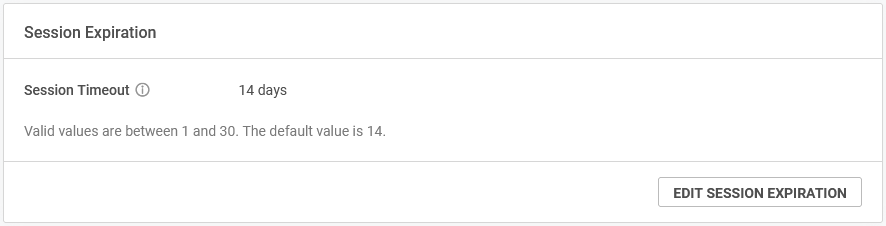 To change the length of time a user can remain logged into the product before the session times out, click Edit Session Expiration. Enter a new Session Timeout value in days and click Save.