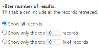 Filter the number of records shown in the table by either a specific number or a percentage.