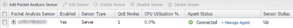 Sensors cannot be edited until they are fully deployed. An entry displays in the notification area when your sensor is deployed, or you can check the Manage QoE Packet Analysis Sensors page. The status of completely deployed and working sensors is Up.