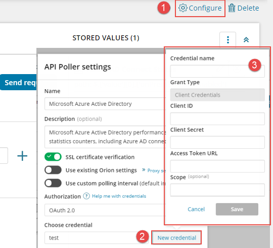 This topic pertains to API poller credentials. To learn about this feature, see Use API pollers to monitor metrics via remote APIs in the SAM Administrator Guide.