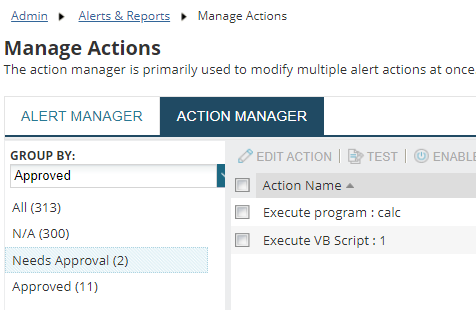 When a user creates a new alert action that requires executing a script, the user must contact a SolarWinds Platform administrator. The administrator must complete the following steps to approve the action. Without the approval, the action will not execute.