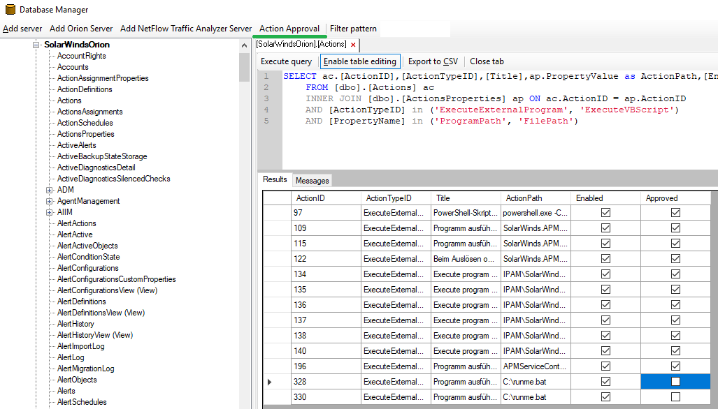 Review the script in the ActionPath column and if you consider it secure, select the box in the Approved column.