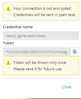 The token only appears once — when you add it. To store it in a secure location, copy it now.