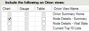 - Select the SolarWinds Platform Web Console views that can display the poller as a chart, gauge, or table, and click Finish.