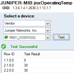 - Test the selected OID against a device. Select a node, and click Test. See Troubleshooting failed tests if the test fails.