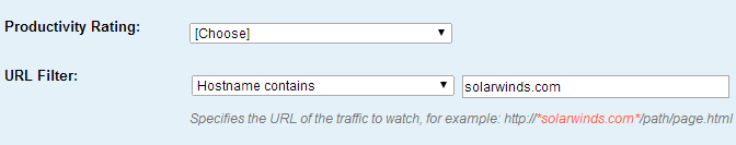 Set the URL Filter. This specifies the HTTP application traffic to monitor. When you choose which filter to use in the drop-down, notice that the example changes to indicate how the accompanying text field will be used.