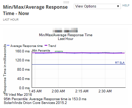 Customize charts for specific objects to include a horizontal line that marks certain values. For example if you have an SLA that requires response time on a key interface to stay below certain value, you can draw a line into the response chart which marks the value that should not be exceeded.