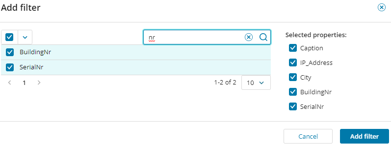 In Add filter, select the property to edit values for and click Add filter. The selected properties are added to the table.