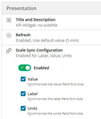 In the panel on the left, you can type a title and description for the widget. The default title is KPI Widget. You can keep default values for all boxes in this section.