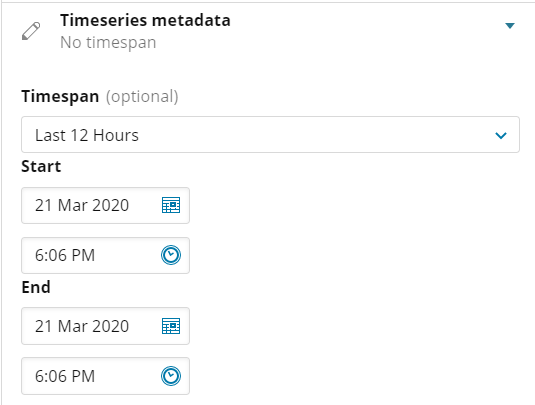 If you want to see a different timespan than the default one, expand Timeseries metadata and customize the time.