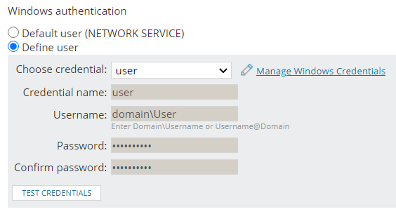 domain\user.SolarWinds recommends that you create tailored low-privilege accounts on the machine to run specific external programs, scripts, and alert actions. See Secure external programs and script alerting actions for details.