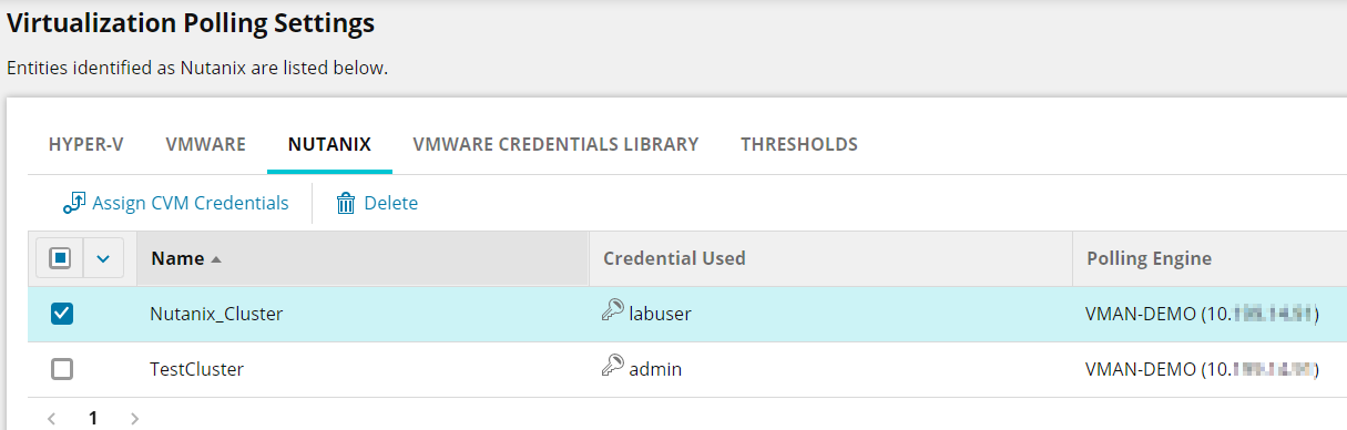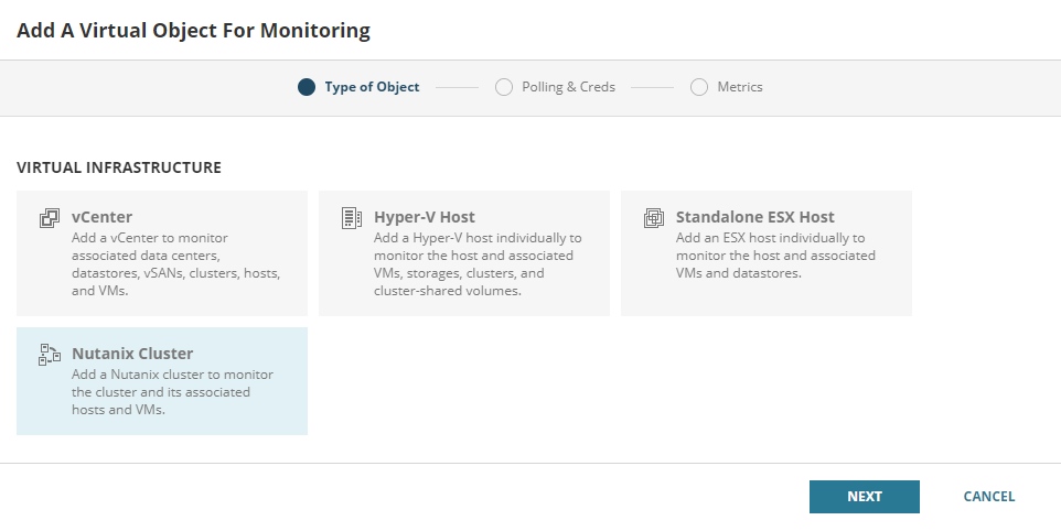 For the Polling Method, select VMware, Hyper-V or Nutanix entities, and then click Next.