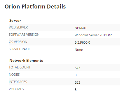 - Verify the SolarWinds Platform server software: in the SolarWinds Platform Web Console, click Settings > All Settings > SolarWinds Platform Details.