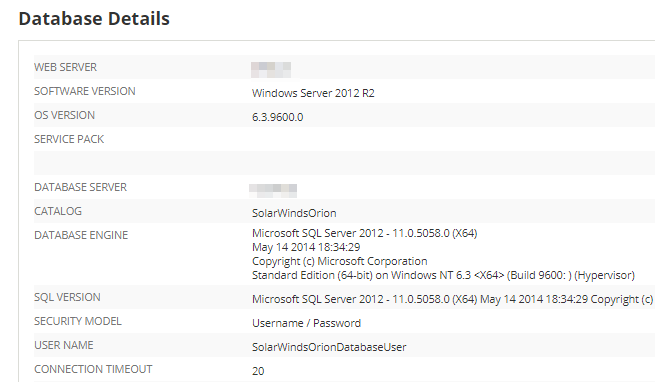 SolarWinds Platform database server properties