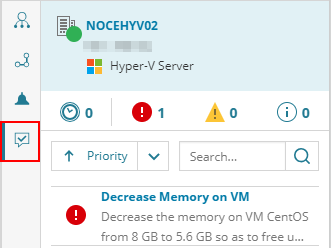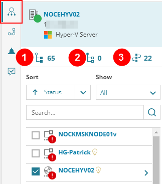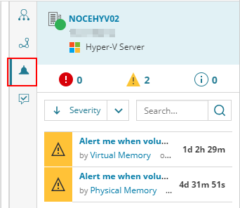 - To filter alerts, click the alert group(s) to be listed: Critical, Warning, or Informational. By default, the Inspector Panel displays all active alerts. You can sort and search the alerts.