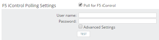 Scroll down to Additional Monitoring Options, select Poll for F5 iControl, provide the credentials for accessing the iControl API on the F5, and click Test.