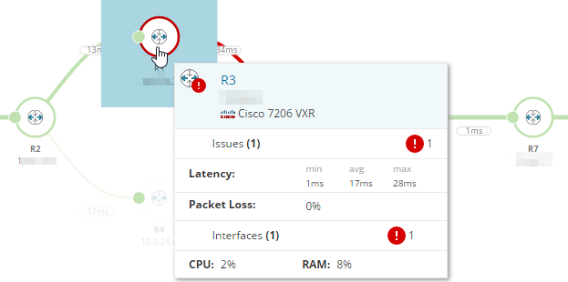 In the Network Path graph, examine the hops. Position the cursor over the node to see details. Click a node group to expand the nodes.