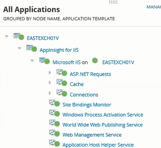 - In the All Applications resource, expand AppInsight for Exchange and then expand an Exchange server.