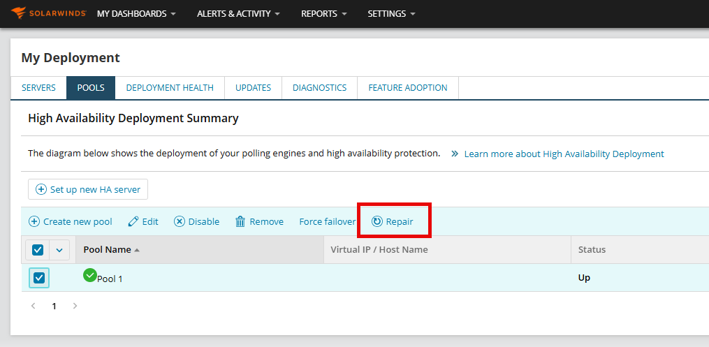 Repair HA pools in the SolarWinds Platform Web Console
