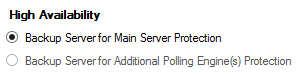 You can now add the backup server to a pool with your main server or Additional polling engine.