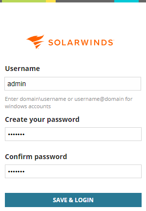 Log in with the user name admin. Enter a password for the admin account, confirm the password, and then click Save & Login.