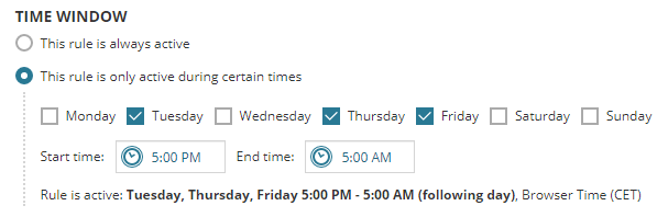 Expand Advanced Settings and specify how much time to prevent rule from firing for flood protection. The default value is no cooldown time.