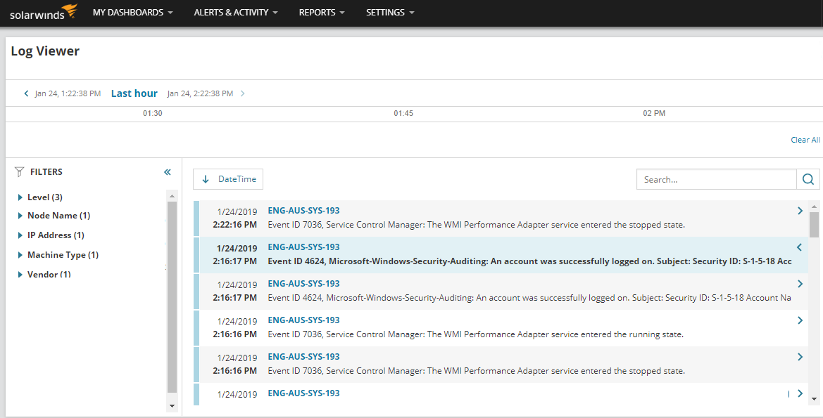 Search and filter historical event logs in Log Viewer