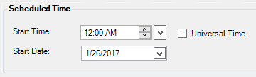In the Schedule Time box, select a day and time. Select Universal Time for Greenwich Mean Time.