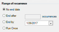 Set the Range of recurrence to No end date to ensure that the WSUS server synchronization procedure never stops, and then click OK.