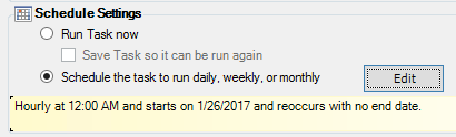 - Select Schedule the task to run daily, weekly, or monthly in the Scheduled Settings box, and then click Edit.