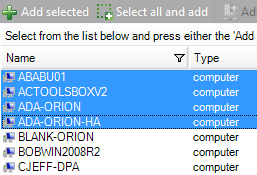 Apply the update to one or more systems in the selected group—for example, WORKGROUP. Press <Ctrl>, select the targeted systems, and click Add selected or click Select all and add to update all systems in the selected group.