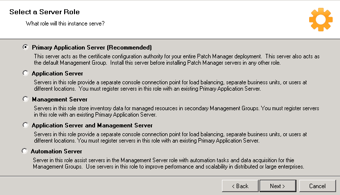 | Automation Server | Provides a workers service so the Primary Application Server can delegate the Automation Server to create connections to specific hosts. The server also bridges the gap between disparate WSUS API versions included with different Windows Server versions. |