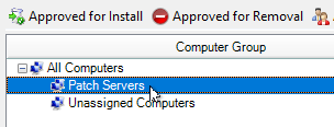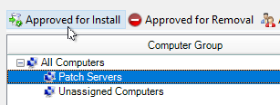 In the Approve Updates window, select the computer groups that receive the third-party updates—for example, Patch Servers.