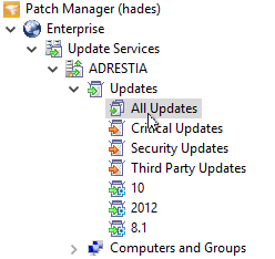 In the navigation pane, expand Enterprise > Update Services > < your_WSUS_server > and expand Updates.