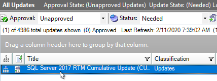 In the navigation pane, maximize Enterprise > Update Services > < your WSUS server > All Updates and select an update option.