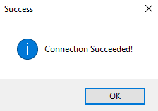 Click Test Connection. If the connection passes, a dialog box displays. Click OK.   If the connection does not pass, check the configuration settings in the window.