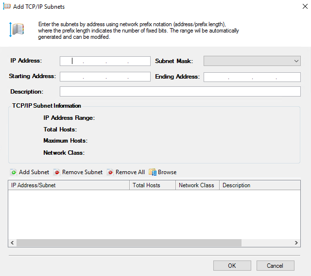In the dialog box, enter the subnet, click Add Subnet, and then click OK.